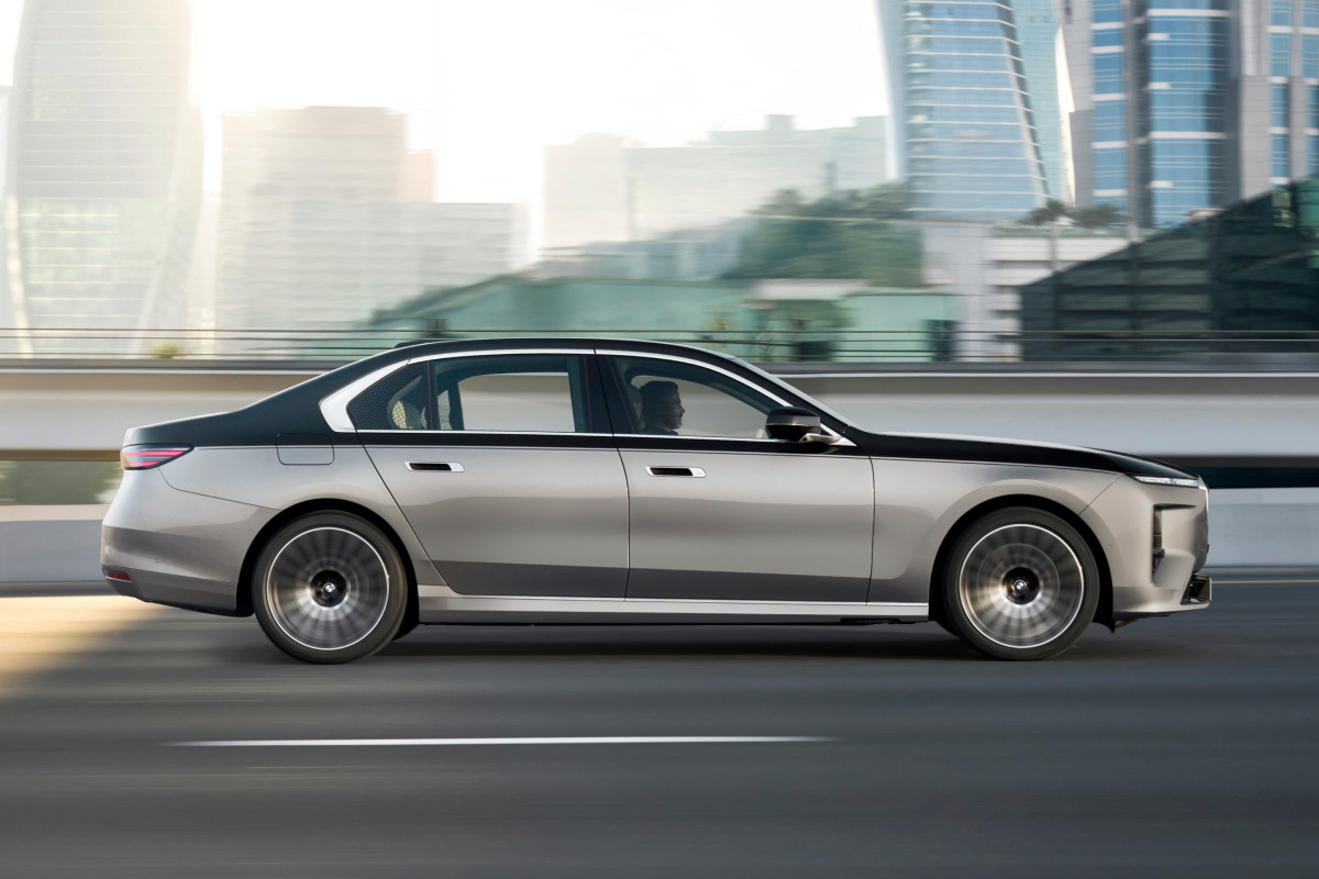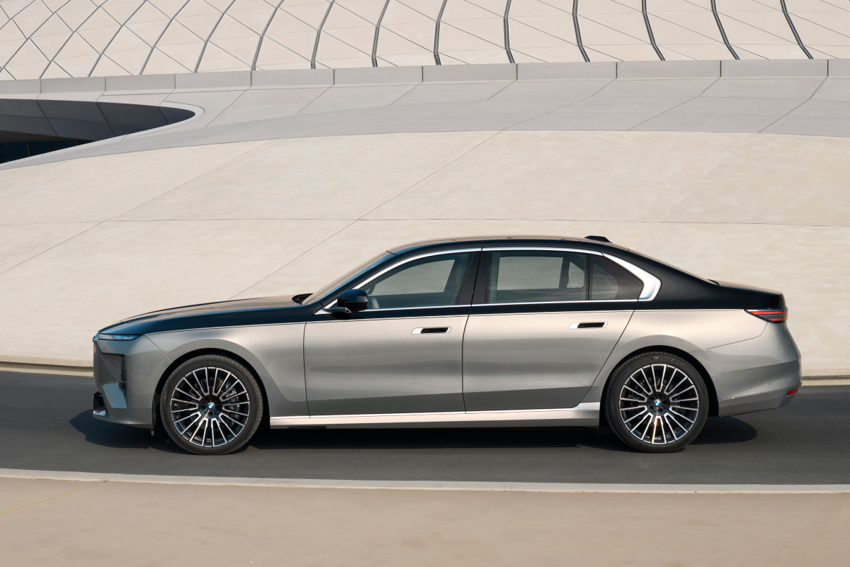 С рестайлингом седьмая серия не отказалась от спорного «четырехглазого» оперения, но пересмотрела форму и композицию его элементов. Фирменная срощенная решетка радиатора седана стала более крупной и угловатой, при этом сохранив диодную рамку. Сегменты ходовых огней срослись с решеткой, а спрятанные в переднем бампере блоки основных фар, наоборот, отдалились от гриля и получили вертикальную ориентацию. Заодно седану вытянули задние фонари, вписав их в новую корпоративную стилистику Neue Klasse, переоформили задний бампер и переработали дизайн колесных дисков, которые в зависимости от комплектации могут иметь диаметр 20–22 дюйма. Как и прежде, модель доступна в обвесах M Sport и M Sport Pro, а также предлагает опциональную двухцветную окраску BMW Individual Dual-Finish. Габариты машины практически не изменились: длина — 5395 мм, ширина — 1950 мм, высота — 1550 мм, колесная база — 3215 мм.